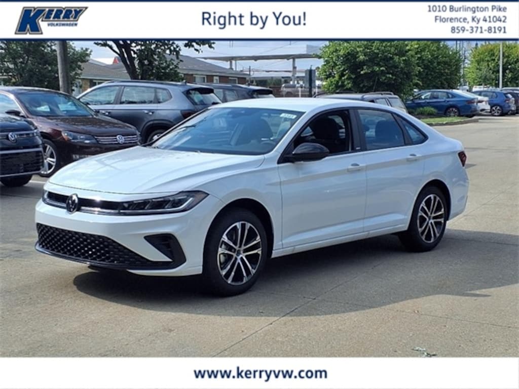 2025 Volkswagen Jetta 1.5T Sport Pure White Apple CarPlay, Bluetooth, Android Auto, Heated Seats, Keyless Entry, Rear View Camera, Touch Screen, Lane Assist, Titan Black w/Cloth Seat Trim.
