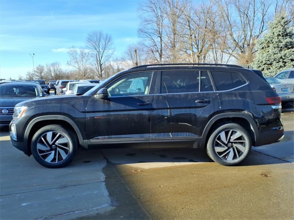 2026 Volkswagen Atlas 2.0T SE w/Technology Deep Black Pearl Apple CarPlay, Android Auto, Heated Seats, Rear View Camera, Navigation, Rain sensing wipers.