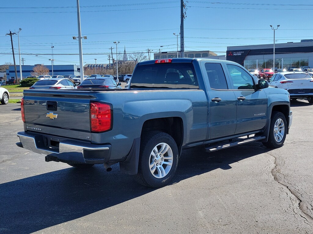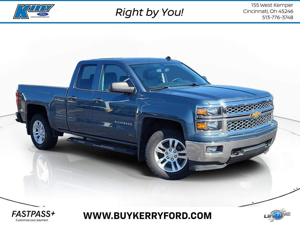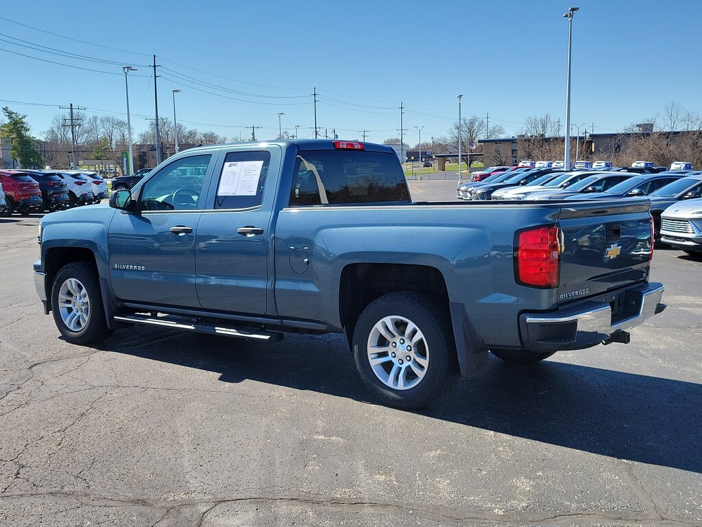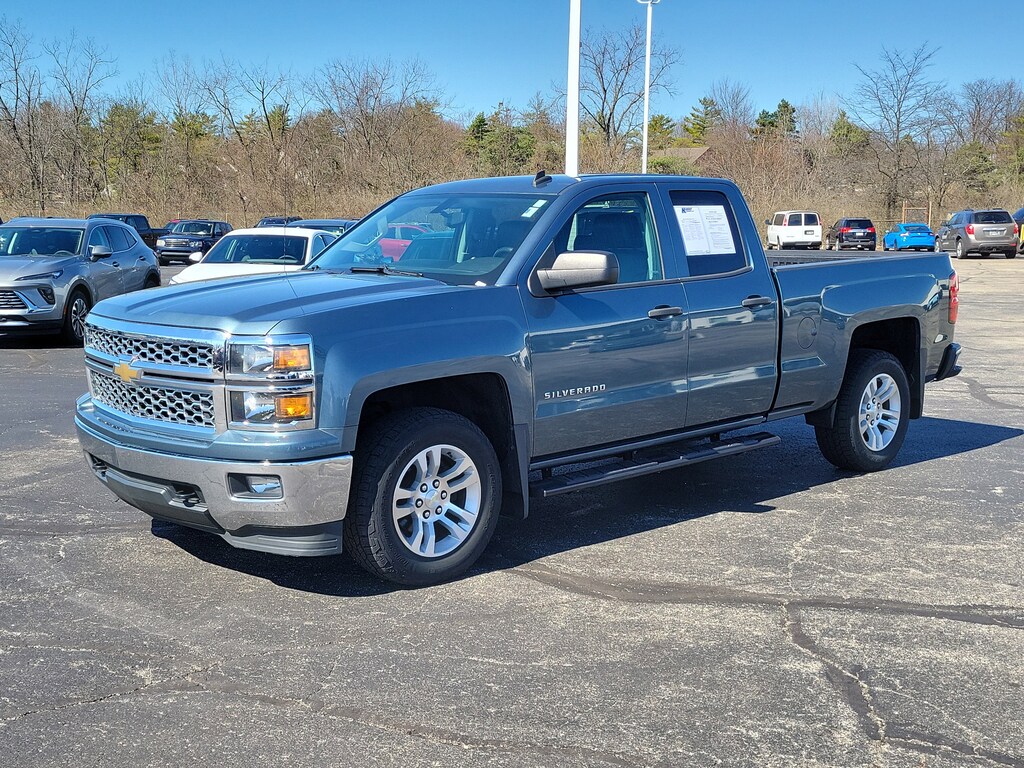 CARFAX One-Owner. Blue Granite Metallic 2014 Chevrolet Silverado 1500 LT LT1 4WD 6-Speed Automatic Electronic with Overdrive EcoTec3 4.3L V6 Flex Fuel Silverado 1500 LT LT1, 4D Double Cab, EcoTec3 4.3L V6 Flex Fuel, 6-Speed Automatic Electronic with Overdrive, 4WD, Blue Granite Metallic, Jet Black Cloth, 110-Volt AC Power Outlet, 150 Amp Alternator, 6 Speaker Audio System, All Star Edition, Bed Liner, Bluetooth® For Phone, Brake assist, Delay-off headlights, Dual-Zone Automatic Climate Control, Electric Rear-Window Defogger, Electronic Stability Control, Front Halogen Fog Lamps, Fully automatic headlights, Leather Wrapped Steering Wheel w/Cruise Controls, Panic alarm, Power windows, Power Windows w/Driver Express Up, Radio: AM/FM 8" Diagonal Color Touch Screen, Rear Vision Camera w/Dynamic Guide Lines, Remote Keyless Entry, Remote keyless entry, Remote Vehicle Starter System, Speed control, Trailering Equipment, Wheels: 18" x 8.5" Bright-Machined Aluminum.
