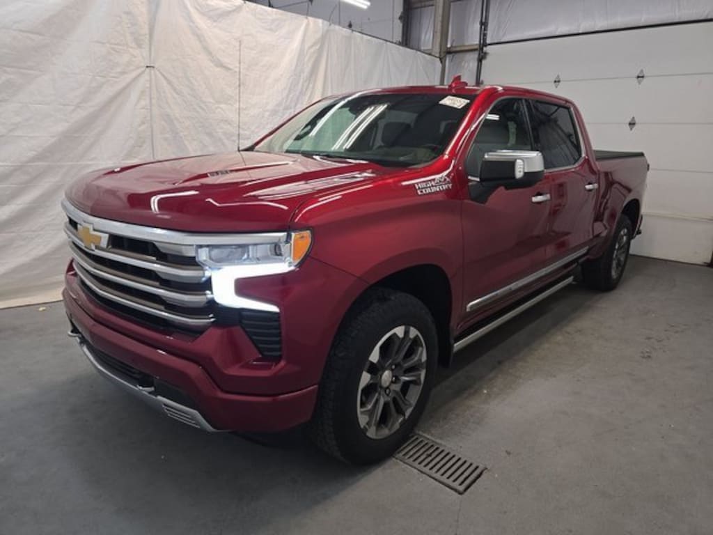 Home of the Lifetime Powertrain Protection! Proudly Serving: Cincinnati, Dayton, Lexington, Louisville, Hamilton, Mason, Sharonville, Beavercreek, Springdale, West Chester, Monroe, Fairfield, Kenwood, Newport, Covington, Fort Mitchell, Fort Thomas, Fort Wright, Independence, Florence, Union, Alexandria, Butler, Falmouth, Dry Ridge, and all of greater Cincinnati, Ohio, Indiana, and Northern Kentucky. 2022 Chevrolet Silverado 1500 High Country Cherry Red Tintcoat BLUETOOTH, BACK UP CAMERA, 10-Speed Automatic, 4WD, Jet Black Leather. CARFAX One-Owner.
