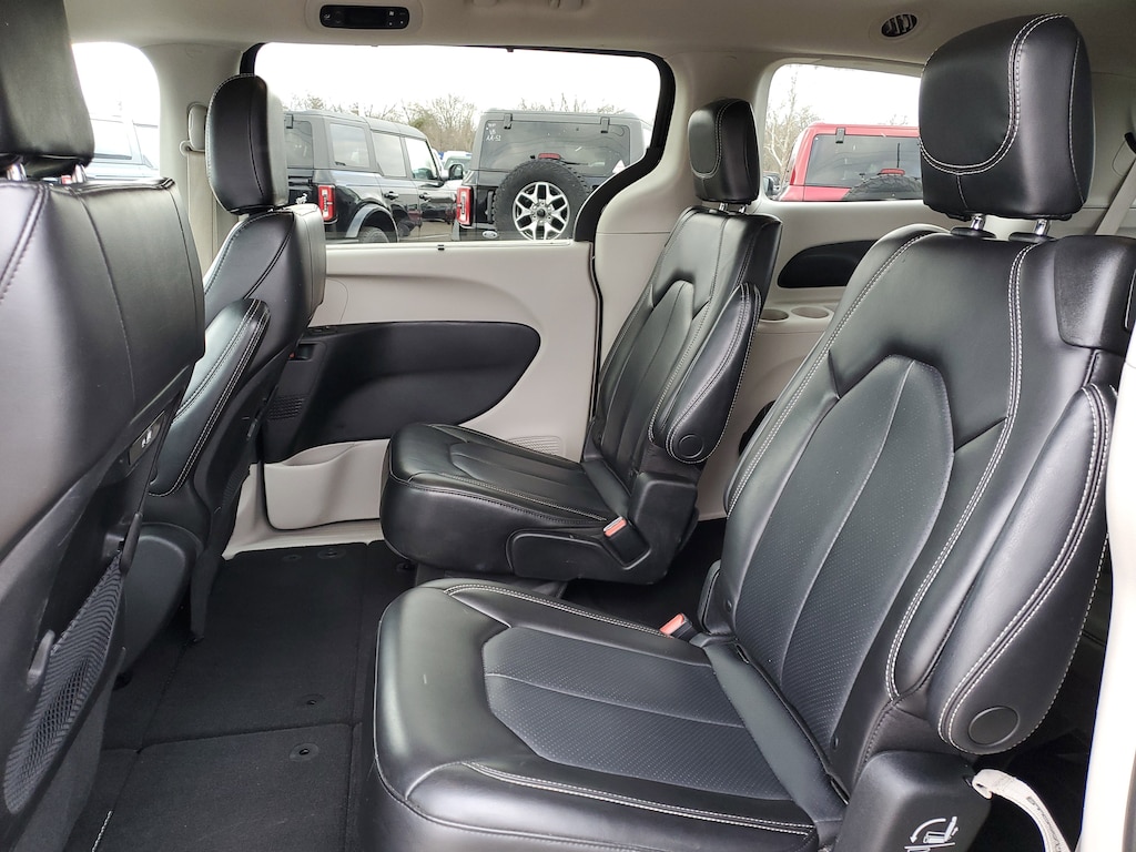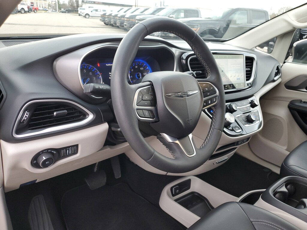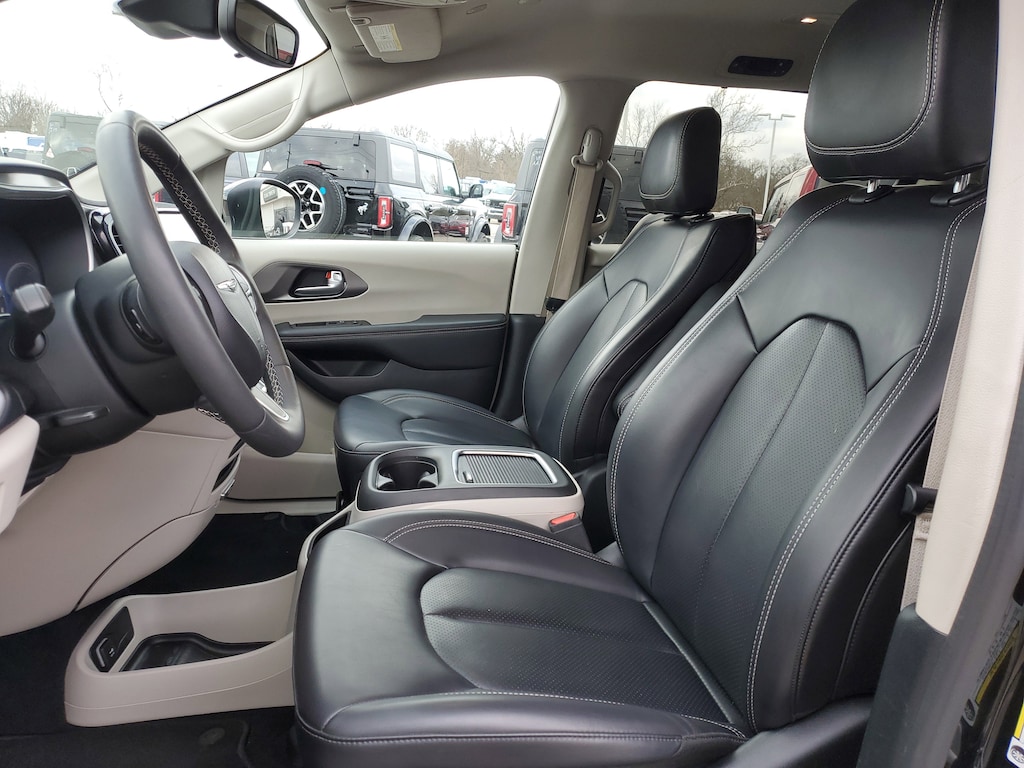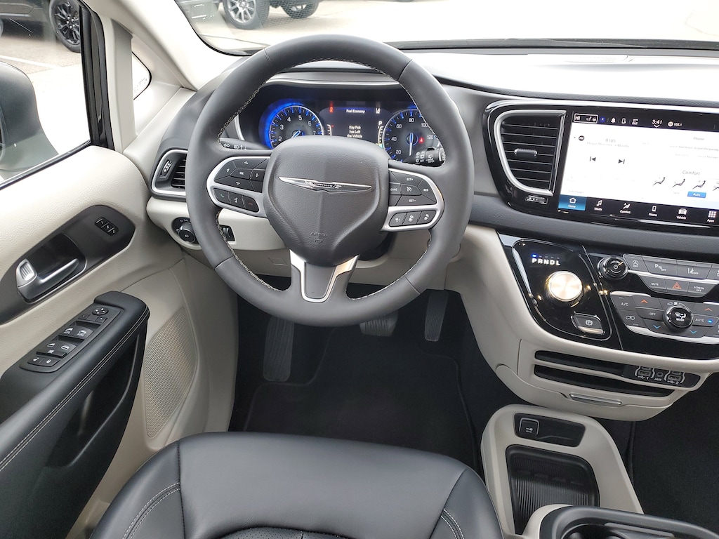 CARFAX One-Owner. Clean CARFAX. Brilliant Black Crystal Pearlcoat 2023 Chrysler Pacifica Touring L FWD 9-Speed 948TE Automatic 3.6L V6 24V VVT HEATED SEATS, LEATHER, 17" x 7.0" Aluminum Wheels, 3rd row seats: split-bench, 6 Speakers, ABS brakes, Air Conditioning, Alloy wheels, AM/FM radio: SiriusXM, Apple CarPlay, Apple CarPlay/Android Auto, Audio memory, Automatic temperature control, Black Seats, Brake assist, Driver's Seat Mounted Armrest, Dual front impact airbags, Dual front side impact airbags, Electronic Stability Control, Four wheel independent suspension, Front Bucket Seats, Front dual zone A/C, GPS Antenna Input, Heated door mirrors, Heated front seats, Heated steering wheel, Illuminated entry, Integrated Active Noise Cancellation, Integrated Center Stack Radio, Memory seat, Outside temperature display, Overhead console, Power door mirrors, Power driver seat, Power Liftgate, Power steering, Power windows, Quick Order Package 27L, Radio data system, Radio: Uconnect 5 w/10.1" Display, Rear air conditioning, Rear window defroster, Reclining 3rd row seat, Remote keyless entry, Split folding rear seat, Steering wheel mounted audio controls, Traction control.