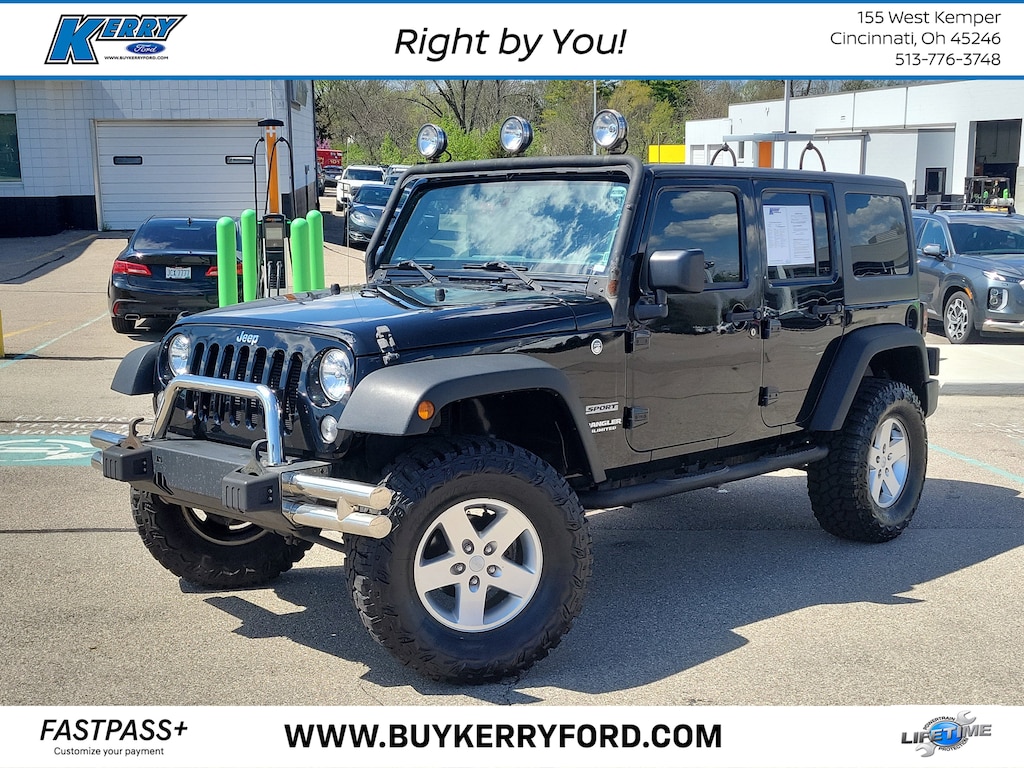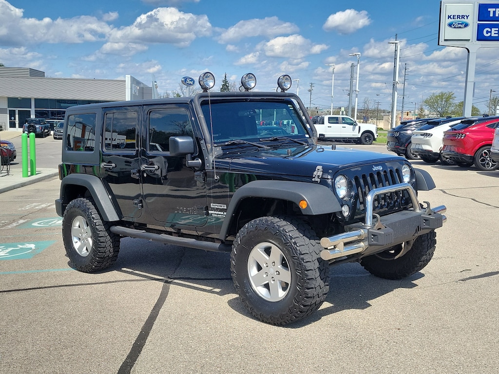 Clean CARFAX. Black Clearcoat 2016 Jeep Wrangler Unlimited Sport 4WD 5-Speed Automatic 3.6L V6 24V VVT Wrangler Unlimited Sport, 4D Sport Utility, 3.6L V6 24V VVT, 5-Speed Automatic, 4WD, Black Clearcoat, Black Cloth, 8 Speakers, AM/FM radio, Brake assist, CD player, Electronic Stability Control, Normal Duty Suspension, Power steering, Quick Order Package 24C, Steering wheel mounted audio controls, Traction control.