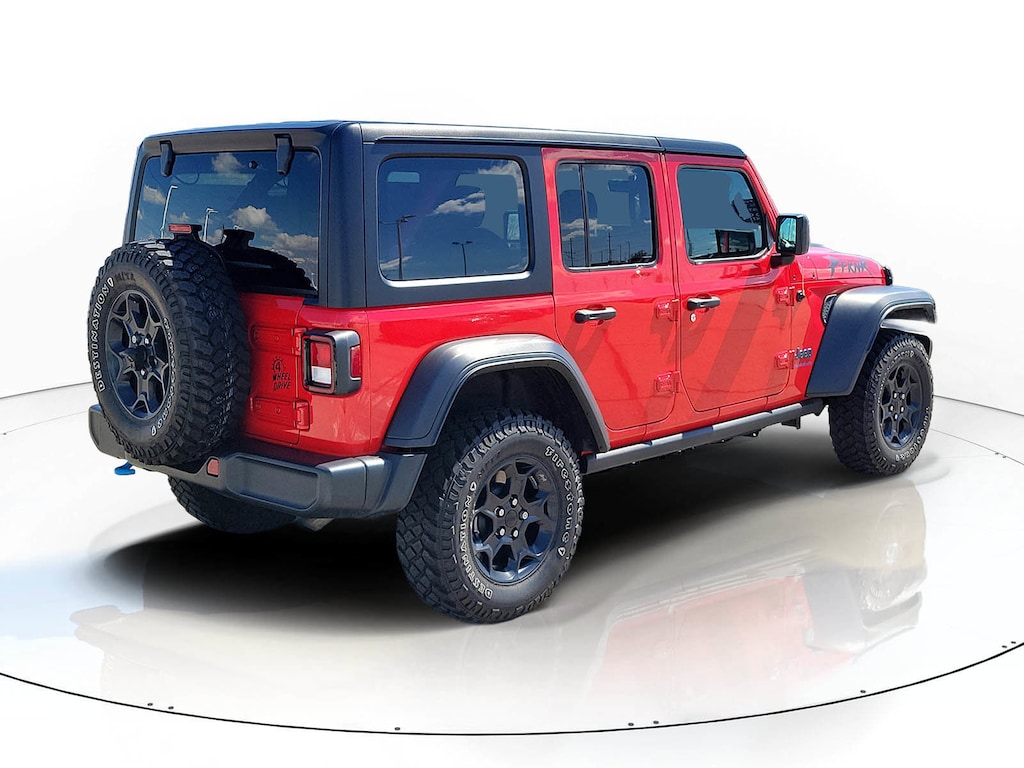 CARFAX One-Owner. Firecracker Red Clearcoat 2023 Jeep Wrangler Base 4xe 4WD 8-Speed Automatic 2.0L I4 DOHC Wrangler Base 4xe, 4D Sport Utility, 2.0L I4 DOHC, 8-Speed Automatic, 4WD, Firecracker Red Clearcoat, Black Cloth, ABS brakes, Alloy wheels, Compass, Electronic Stability Control, Front dual zone A/C, Heated door mirrors, Illuminated entry, Low tire pressure warning, ParkView Rear Back-Up Camera, Passenger door bin, Remote keyless entry, Traction control.