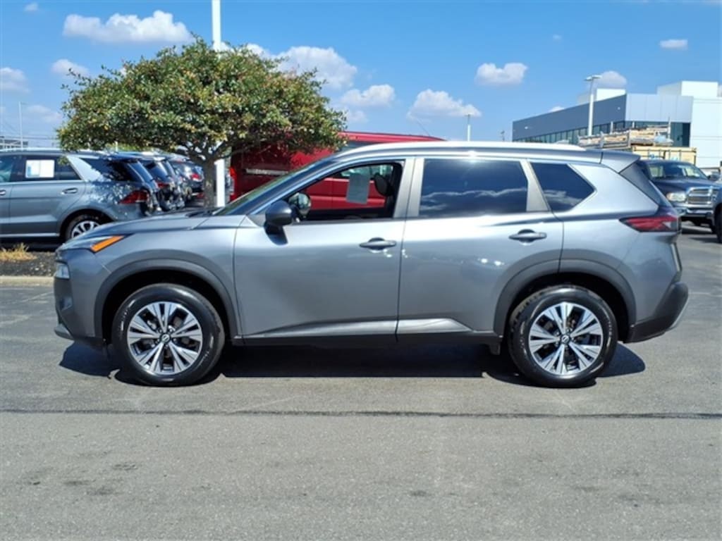 Gun Metallic 2022 Nissan Rogue SV FWD CVT with Xtronic 1.5L I3 Turbocharged DOHC 12V LEV3-ULEV50 201hp Apple CarPlay, Bluetooth, Android Auto, Blind Spot Warning, Heated Driver & Front Passenger Seats, Heated Leather Wrapped Steering Wheel, Leatherette Door Trim Inserts w/Stitch, Power Liftgate, Power Panoramic Moonroof, PRIMATEX Leatherette Seat Trim, Rear Door Sunshades, Rear Personal Lights, Silver Painted Roof Rails, Steering wheel mounted audio controls, SV Premium Package, Traction control.